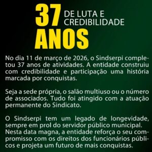 No dia 11 de março de 2026, o Sindserpi completou 37 anos de atividades. A entidade construiu com...
